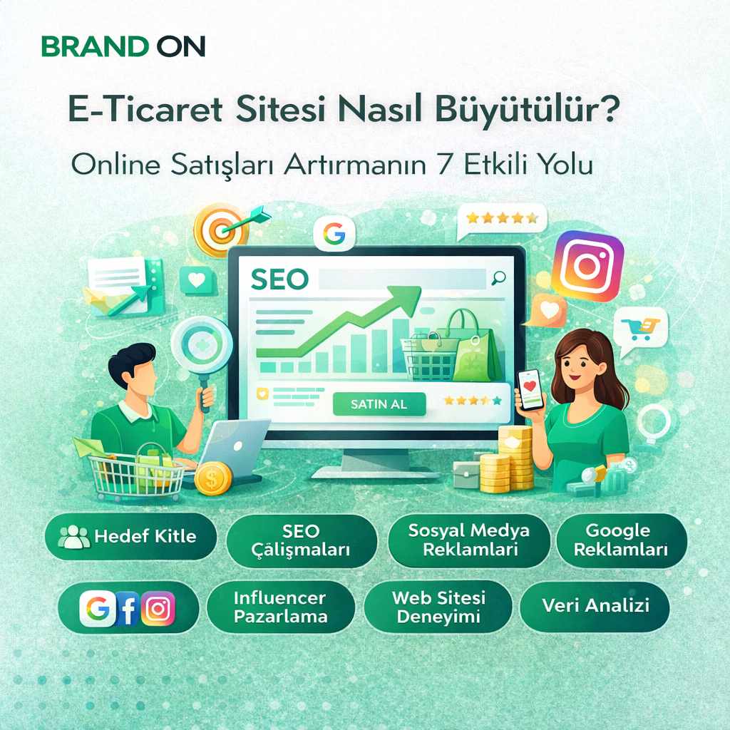 E-Ticaret Sitesi Nasıl Büyütülür? Online Satışları Artırmanın 7 Etkili Yolu E-ticaret sektörü her geçen gün büyümeye devam ediyor. Ancak rekabetin artması, e-ticaret sitelerinin doğru stratejiler uygulamasını zorunlu hale getiriyor. Bir e-ticaret sitesinin başarılı olabilmesi için yalnızca ürün satması yeterli değildir. Doğru e-ticaret pazarlama stratejileri ile marka bilinirliğini artırmak ve potansiyel müşterilere ulaşmak gerekir. Brand On […]