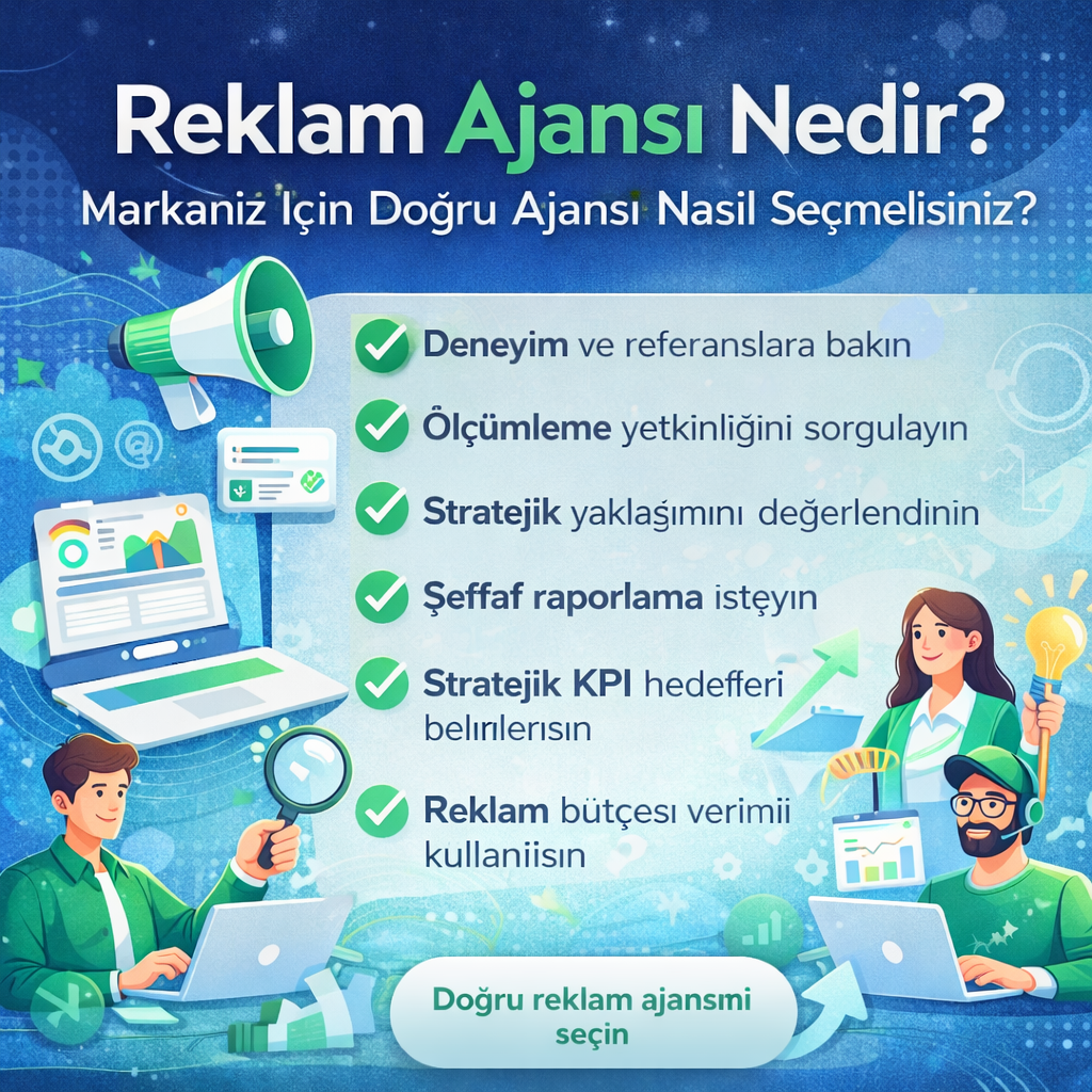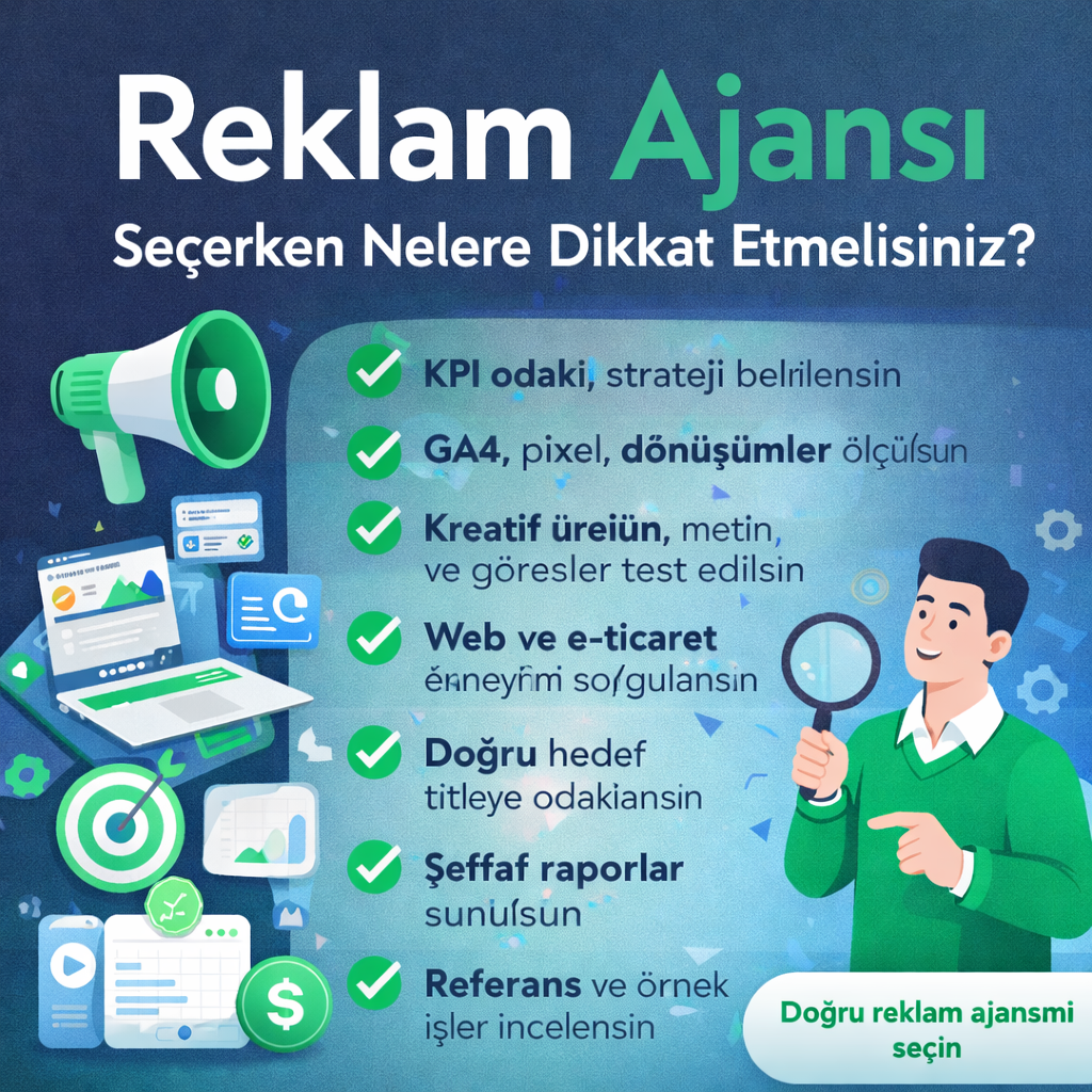 Reklam Ajansı Seçerken Nelere Dikkat Etmelisiniz? (2026 Güncel Rehber) Markanızın dijitalde büyümesi için doğru reklam ajansı ile çalışmak kritik bir karardır. Meta reklamları, Google Ads, e-ticaret büyütme ve dönüşüm optimizasyonu; sadece “reklam çıkmak” değil, ölçülebilir sonuç üretmek demektir. Bu rehberde, işletmenize en uygun reklam ajansını seçerken dikkat etmeniz gereken noktaları net ve uygulanabilir şekilde bulacaksınız. […]