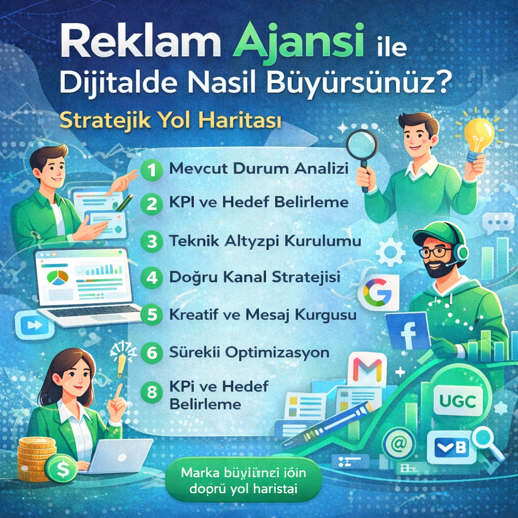 Reklam Ajansı ile Dijitalde Nasıl Büyürsünüz? Stratejik Yol Haritası Dijital pazarlama artık sadece görünür olmakla ilgili değil; doğru stratejiyle ölçülebilir ve sürdürülebilir büyüme sağlamakla ilgilidir. Bu noktada profesyonel bir reklam ajansı, markanızın dijitalde sistemli şekilde büyümesini sağlar. Peki bir reklam ajansı büyümeyi nasıl yönetir? Aşağıdaki yol haritası, süreci netleştirir. 1. Mevcut Durum Analizi Başarılı bir […]