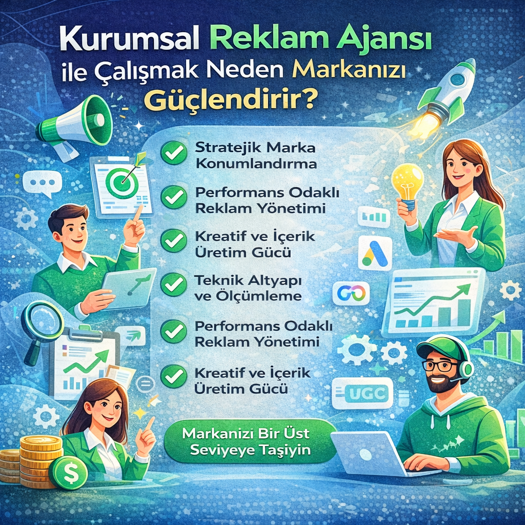 Reklam Ajansı ile Çalışmanın Markanıza Sağlayacağı 10 Büyük Avantaj Dijital dünyada büyümek isteyen markalar için doğru reklam ajansı ile çalışmak artık bir lüks değil, zorunluluktur. Artan rekabet, yükselen reklam maliyetleri ve değişen algoritmalar profesyonel yönetimi gerekli kılar. Bu yazıda, bir reklam ajansı ile çalışmanın markanıza sağlayacağı avantajları detaylı şekilde ele alıyoruz. Reklam Ajansı Neden Önemlidir? […]